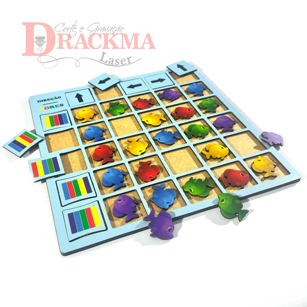 Jogo Educativo Peixes com Setas e Cores MDF 3mm | Coordenação e Raciocínio Infantil