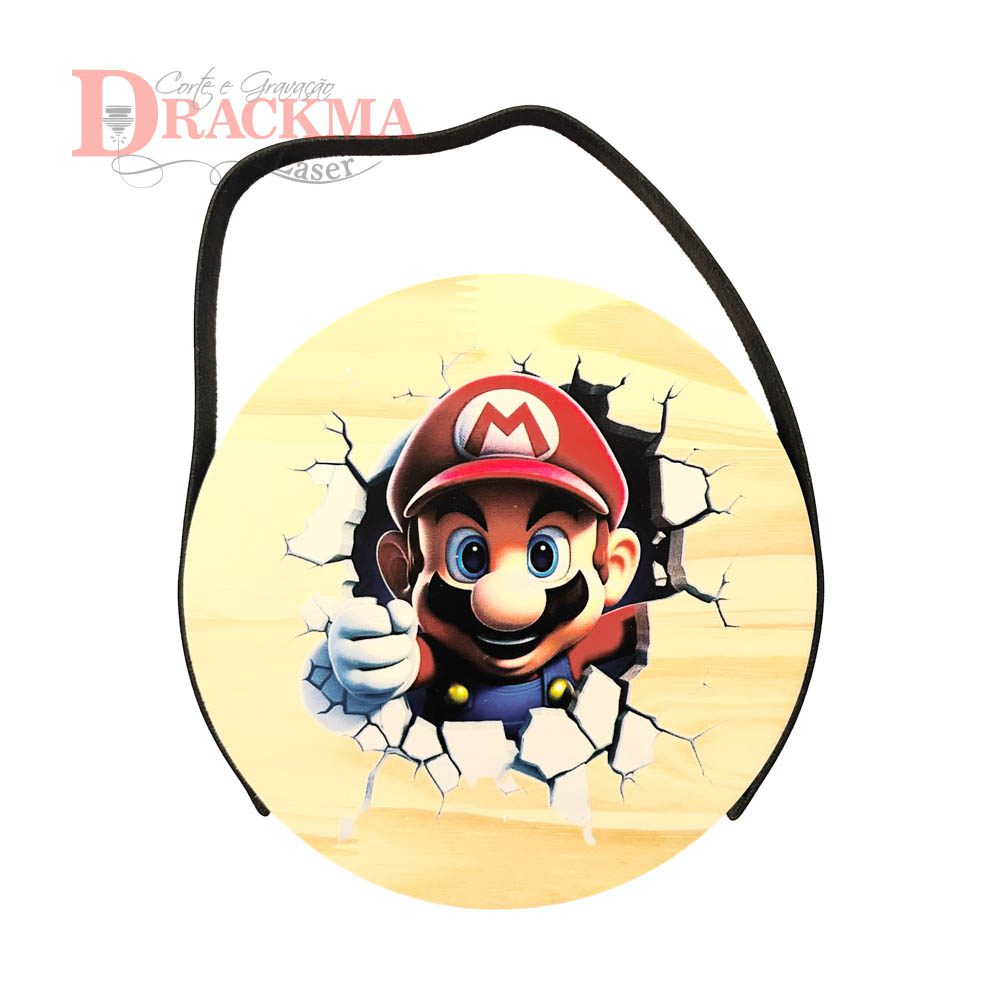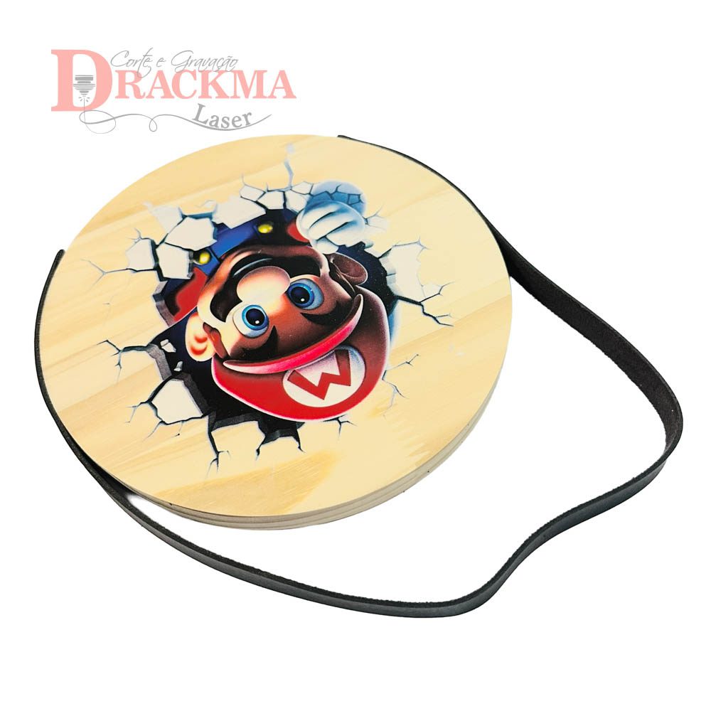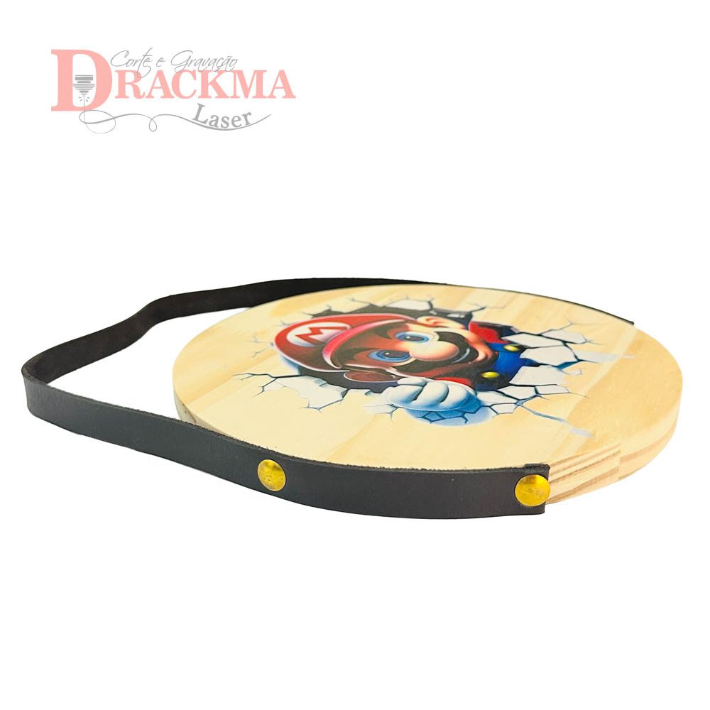 Placa Decorativa Super Mario World em Madeira Pinus 20cm Redonda – Quarto Infantil Gamer